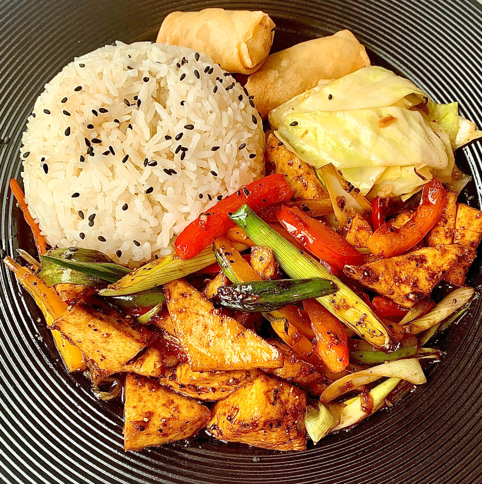 Scharfes Pfeffer-Tofu auf heisser Platte